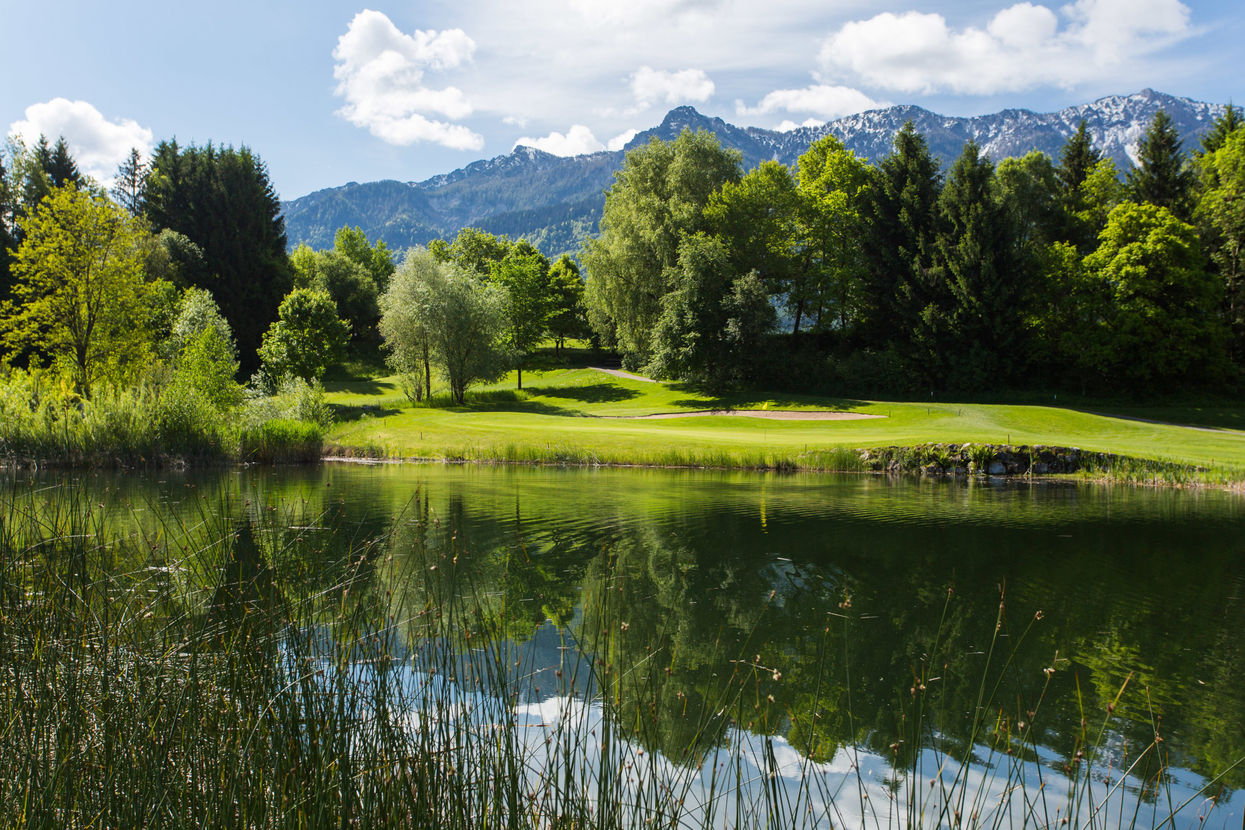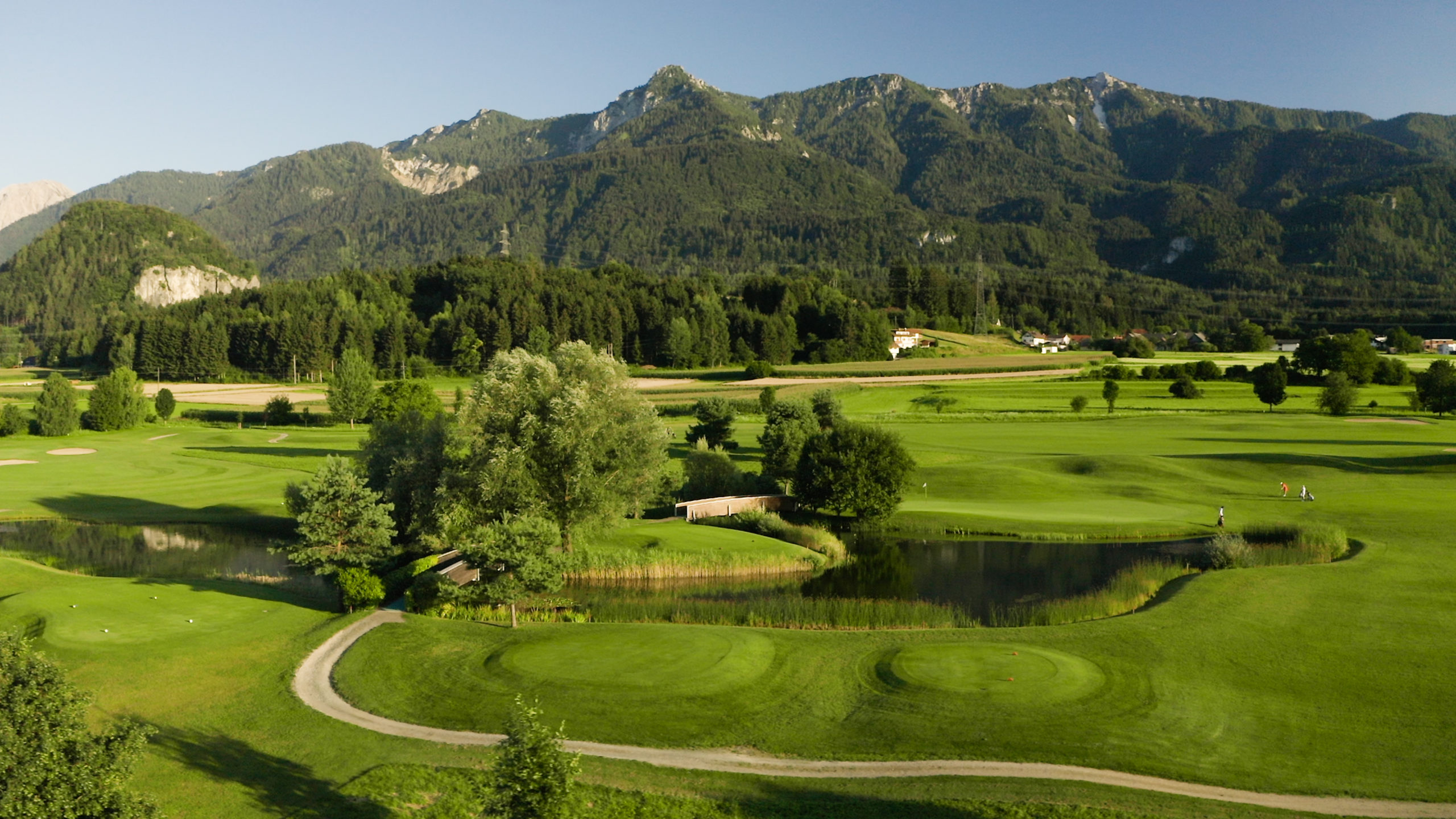Unser 18-Loch Golfplatz ist eine Oase der Erholung im Dreiländereck Österreich, Italien und Slowenien. Geprägt wird die Optik der Anlage durch das beeindruckende Panorama der Karawanken mit dem Mittagskogel im Süden und den Dobratsch im Westen.